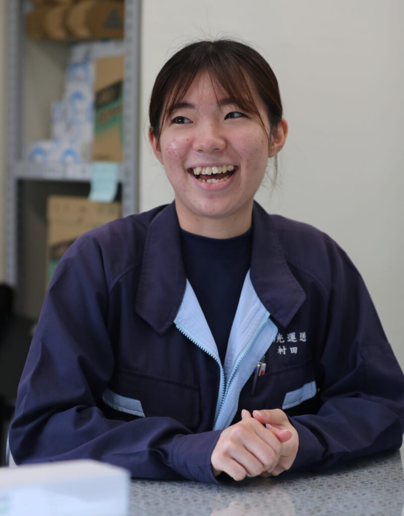 高校生の時、事務仕事だけではなく現場作業もある仕事を希望しておりましたが、人気の高い企業は成績順のため応募できずたまたま見つけた光運送に職場見学へ訪問しました。見学時、運転手さんたちや会社の明るい雰囲気が魅力的で、フォークリフトに乗っている先輩の姿に憧れて入社を決めました。